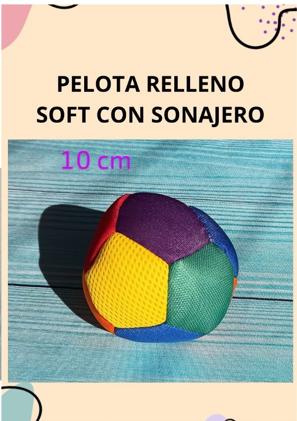 Pelota de tela con relleno de vellón soft y sonajero, multiples usos.